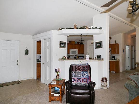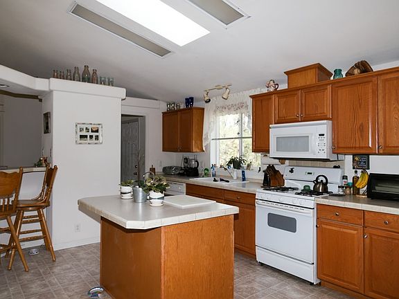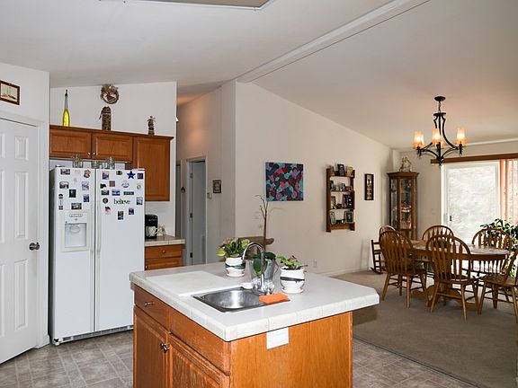 Single level living in newer manufactured home. Light and bright kitchen, and the open floor plan is perfect family gatherings. Wood burning fireplace for the chilly nights, sliding glass doors open to the patio. Pretty local views with beautiful tree cover. The long driveway leads to the private setting for this welcoming home.