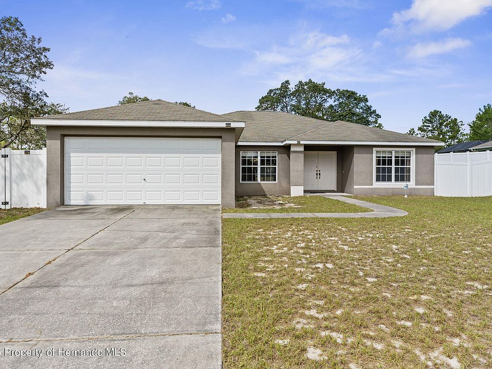 Welcome to this beautifully maintained custom Royal Palm home on a quiet cul-de-sac in Brooksville. Offering nearly 1,900 square feet of living space, this 3-bedroom, 2-bathroom residence sits on a spacious .50-acre vinyl-fenced lot with a shed. Inside, the open floor plan and split-bedroom design provide both functionality and privacy, while brand-new luxury tile flooring adds a modern touch throughout the home. The kitchen is a true highlight, featuring Corian countertops, custom cabinetry with pull-out drawers, and abundant storage. The primary suite offers comfort and seclusion, while the additional bedrooms are generously sized for family or guests. Step outside to enjoy the large backyard, perfect for entertaining, pets, or future customization. Tucked away in a desirable cul-de-sac setting, this home combines privacy with convenience, located just minutes from schools, shopping, dining, and major highways. Move-in ready and full of thoughtful upgrades, this Brooksville property is the perfect blend of style and comfort—schedule your private showing today!