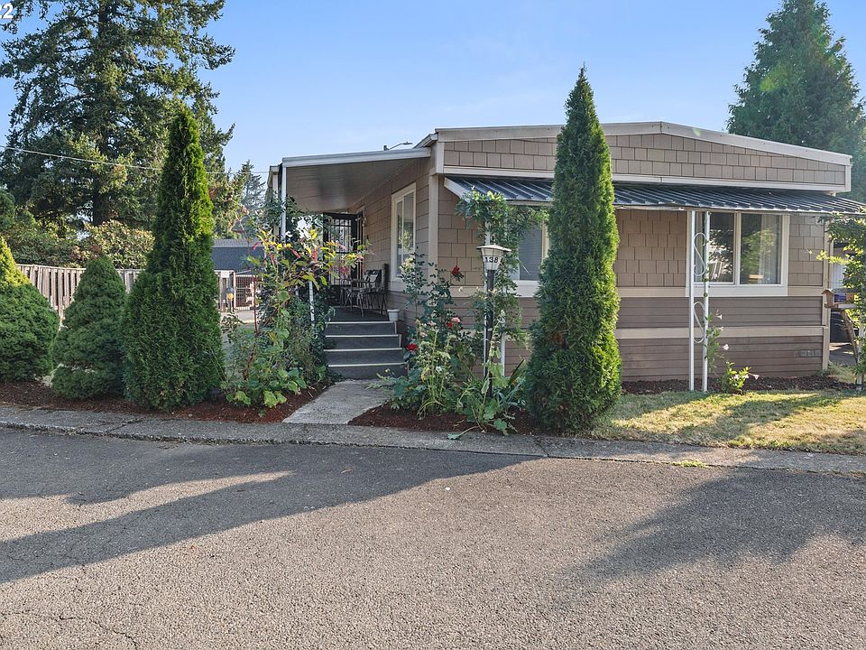 Check out this spacious 2 bed 1 bath, 800sqft double wide manufactured home located on a corner lot at Mobile Village mobile home park. This gem includes an open concept feel, large living room, dining area, large bedrooms, yard space, & more. Home is close to shops and public transportation. Space rent is $958 a month. All ages park.