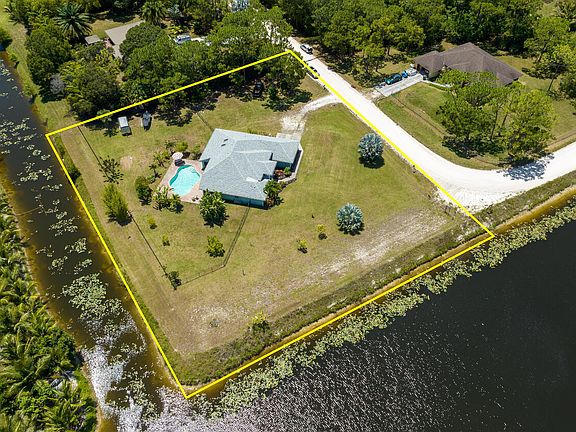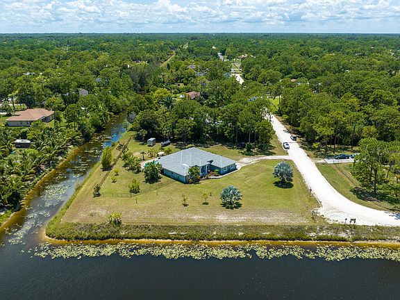 2.46 acres with water views and privacy! This 3 bedroom plus den, 2.5 bath, pool home is located on a large lot with canals on the eastern and southern portions of the property. It features a spacious open floor plan with split bedrooms and room to entertain. Enjoy your screened in back porch, overlooking your private pool, large yard, and relaxing water views! The kitchen features wood cabinets, breakfast nook, pantry, and a bar. Wood floors and high hat lighting throughout. The den can be utilized as a 4th bedroom or office. The master has french doors to patio area, a large walk-in closet, and dual sinks. Roof was replaced in 2019, exterior paint in 2020, gutters, irrigation system and pool pump within the last year. Check out this beautiful home on a unique lot before it's gone!