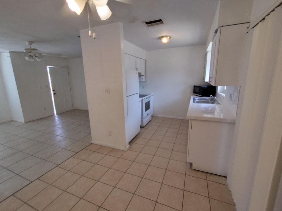 Freshly Painted 2/1/1 Single Family Home with a brand new metal roof and brand new kitchen wooded cabinets. No expense was spared in the kitchen glasstop stove, frig and microwave. New bathroom vanity and light kit. The house sits on a 1/2 Acre lot with plenty of room for your toys in a low crime area on the outskirts of Fort Myers. Completely tiled in all rooms, Central A/C that was recently serviced combined with ceiling fans to keep you cooled in the Florida summers. Please, call Orlando for you viewing appointment. One year lease with tenant paying all utilities. Garage attached to house. Must have stable employment and absolutely no evictions and must list previous landlords