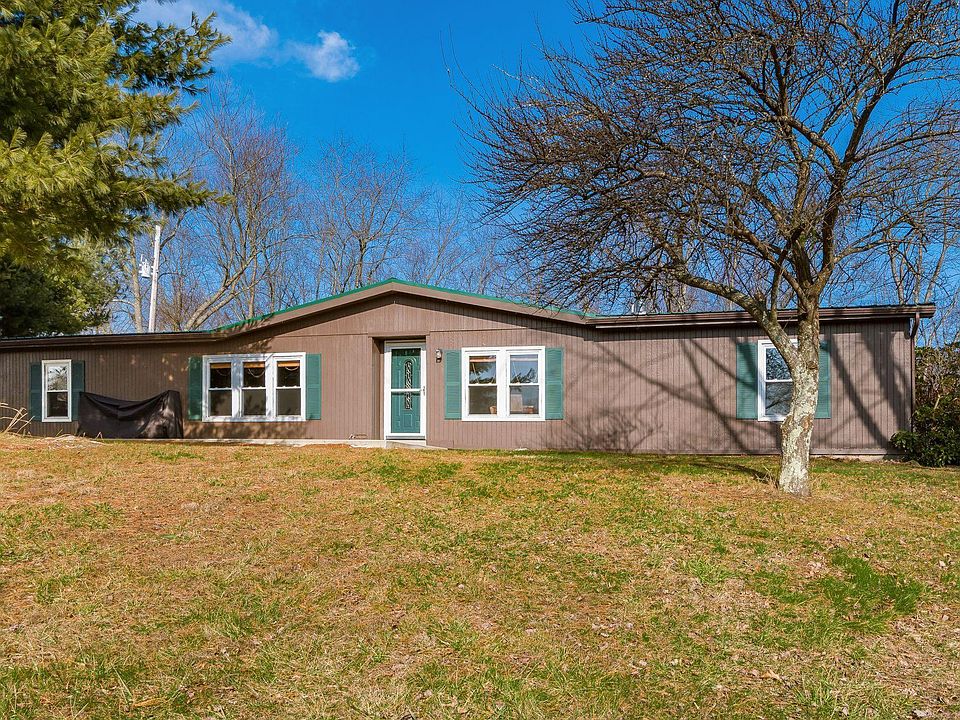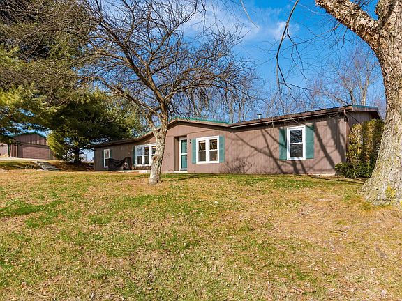 Move in ready 1,970 sq. ft. ranch home with gorgeous country views sitting on 10 acres. Just freshened up with new paint and LVT flooring. Open concept, large great room with log woodburning fireplace. Gorgeous newly finish knotty pine 4 seasons room adds for additional flex space. New concrete patio and walkway leading to large detached garage with new concrete flooring. Beautiful trails and wildlife throughout this peaceful wooded acreage.