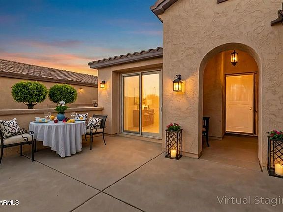 Discover unbeatable value in this SOLAR-POWERED 2-Bed + Den home PRICED WELL BELOW COMPS - SIMILAR UPGRADED MODELS SELL FOR $100K+ MORE. Enjoy instant equity and the freedom to remodel without overspending. Features include solar panels for ultra-low energy bills, stainless steel appliances, staggered kitchen cabinets, recessed lighting, and abundant natural light from its ideal N/S exposure. A gated front courtyard with a sliding door off the kitchen creates a perfect indoor-outdoor feel. Enjoy privacy with ONE OF THE FEW HOMES THAT HAVE BLOCK FENCING ALL THE WAY AROUND & no homes in the back. This home is easily the best value in Trilogy. Welcome to the active adult community of Trilogy at Vistancia where you will find outstanding amenities, including 2 clubhouses, pickleball, tennis, bocce ball, fitness centers, swimming & golf.