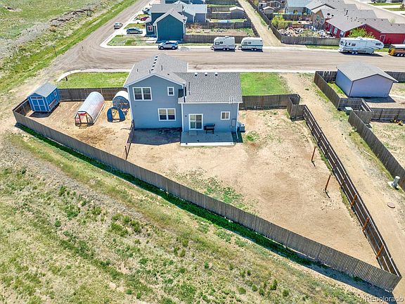 The Pronghorn floor plan was one of the largest homes built in East Bijou Estates and this home sits on one of the largest lots - a corner lot measuring .52 acres!! The large lot features a good sized storage shed, a chicken coop with fencing (yes!! chickens allowed) and a green house. Right off the back yard is an established walking trail for enjoyment. The exterior of the home was painted just this month of May. Garage has 220V. Front yard is sprinklered. The interior features a high family room ceiling, granite in kitchen and baths, custom tile in baths, basement rough-in, new kitchen engineered hardwood floor. This is a beauty and the sellers have worked hard getting the home in a condition that will be appreciated for 'passing of the torch'.