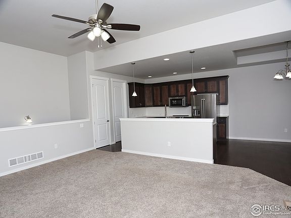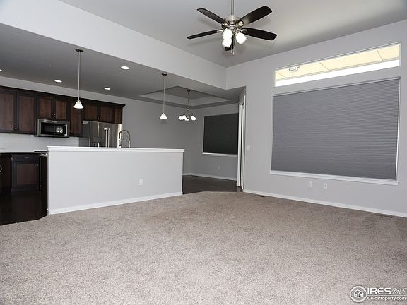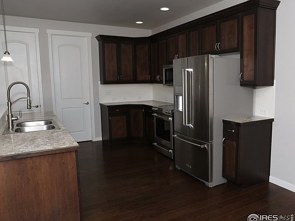 Move in ready ranch style home on nearly 1/2 acre lot. The home features an expansive master suite w/full bath and walk in custom closet, 42" upper cabinets, upgraded KitchenAid stainless steel appliances (refrigerator included), pantry, hardwood floors, A/C, blinds, large patio, beautiful mountain view, oversized 3 car tandem garage (806 sq.ft) w/8 foot garage doors & unfinished basement w/9 foot ceilings. Easy drive to Fort Collins, Greeley or Windsor.
