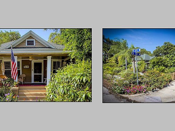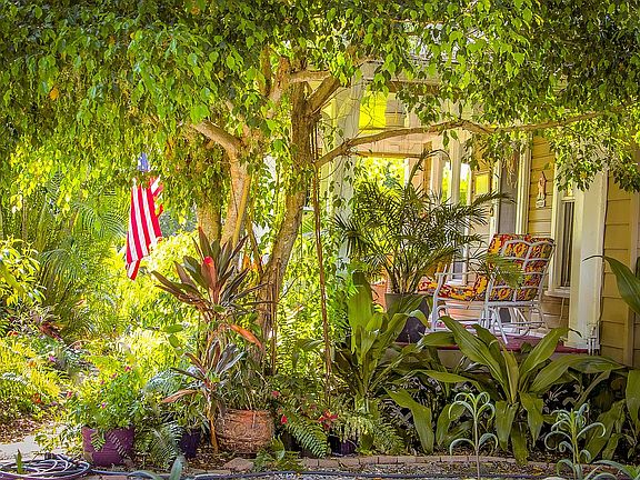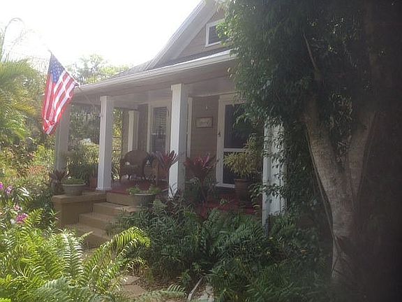 Character and style! Located in Palmetto's historic district on large corner lot near the river. Updated in detail, featuring original and new hardwood & ceramic floors, high coffered ceilings, updated bathrooms, eat-in kitchen w/ wood cabinets, center island, tons of cabinet space, granite countertops, undermount sink & stainless steel appliances. Composite rear deck and also a large front porch surrounded by beautifully landscaped garden w/ majestic trees, fountain & offers a feeling of being in a tropical retreat. Great for entertaining! New A/C system 2020 and new metal sun-rib roof in 2021. This is a special home for those desiring the unique features of the past and updated conveniences of today. The home has 3 legal bedrooms although the current owners use the third as a huge walk-in closet, storage room and pantry.