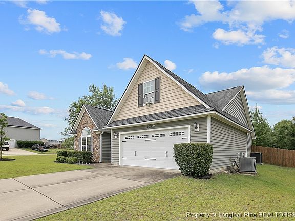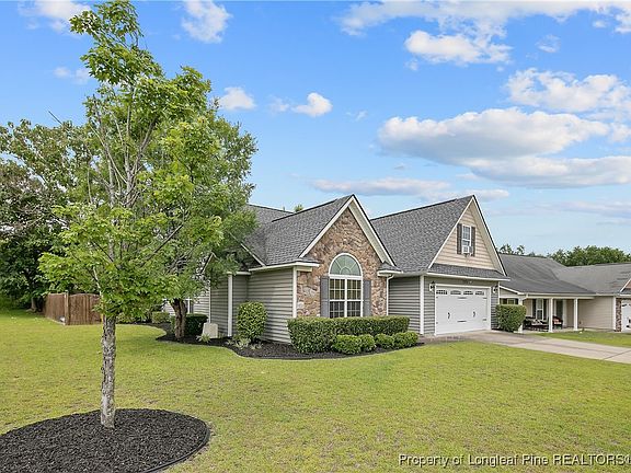 This Warm and Cozy Home is in a great location close to everything and Well Worth Your Consideration. For military/government employees, it's roughly a 20–25-minute commute to the heart of Ft. Bragg. This home offers a semi-open floor plan to include 3 bedrooms, a bonus room and 2 full bathrooms. You will love the feel of home while you enjoy the natural lighting sitting in your breakfast nook! The living room has a vaulted ceiling with a fireplace. The Kitchen boasts a functional layout to include stainless steel appliances and a pantry with the dining space adjacent to the living room, AND an eat-in area all ideal for family meals and entertaining. You will appreciate the practicality and style with durable laminate flooring throughout the vast majority of the home, and carpet in the bedrooms. The primary suite is a standout feature, offering generous space highlighted by a trey ceiling, a walk-in closet, and an en-suite bathroom that includes a dual vanity and a garden tub. In addition, the bonus room brings extra living space for a rec room, office space or media room. Need extra storage? The attic is walk-in and very spacious! Plus, a "finished" double garage! Relax in the back yard completely closed off with privacy fencing and a large patio area, offering many possibilities for entertaining, gardening, and other activities. The outdoor playhouse is included as a bonus! With its comfortable living spaces, amenities, and superb location, 1305 Anhinga Court truly is a fantastic find and is ready to welcome you home!