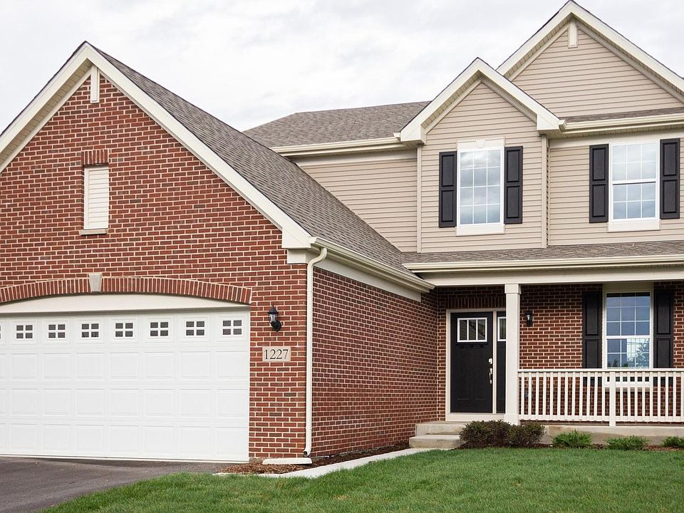 This popular home won't last long!! The Brooklyn model will be the one to make you say YES! Beautiful home with front porch greets you as you enter into the two-story open entry accented by your gorgeous staircase with iron spindles and stained oak rails. Luxury vinyl plank flooring runs through the entire first floor. The kitchen that will be the talk of the neighborhood has an abundance of white 42" cabinetry, including a separate desk/office area, iced white quartz counters, pantry and GE stainless steel appliances too! Oversized breakfast area or dining room-you choose, because this home has both-all of which are nicely connected to the family room. Top the first floor off with plenty of large windows, LED recessed lighting, and a first-floor office, and call it your happy place! On the second level, the Owner's suite won't disappoint with plenty of space and an ensuite with a separate designer tiled shower, raised height vanity, double bowl sink, and double walk-in closets!. 3 additional large guest bedrooms and a full bath are also located on the second floor. Clubhouse community with Adult and kiddie, in-ground pool, tennis courts, walking trails, ponds, and the acclaimed Minooka Schools! Hurry before it's gone! Homesite 383 Pictures of a completed and furnished Brooklyn model with a differing elevation.