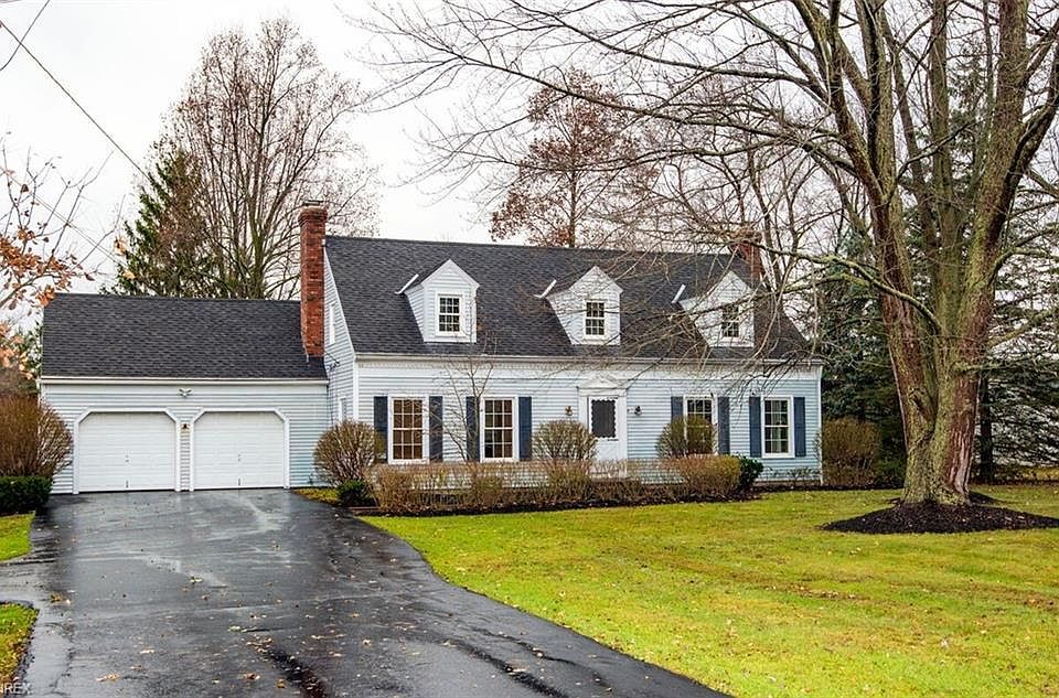 Minutes from the very quaint and trendy Downtown Chagrin Falls sits this non traditional cape with 3 fireplaces. Very traditional by style yet this cape on an acre lot features 3 very large bedrooms upstairs. There is a huge tandem 4th bedroom off the 3rd which could double as a teen suite or 2nd floor family room. All rooms have natural Hardwood flooring except the kitchen. The very sizable formal living room features one of the 3 fireplaces. An additional fireplace in the dining room and wood-burner insert in the family room open to the kitchen. The 1st floor half bath is located off a small back hall area as you enter from the 2 car garage. The closet space through-out is a welcome surprise! The master bedroom includes a private bath and two closets, one walk in and an additional closet as well. The kitchen is also very large and ready for personal touches or a redesign. Recent important improvements are newer furnace and all windows. New holding tank, Fresh paint and professionally cleaned. Two car attached garage and nice sized out building for additional storage. All this and a beautiful deep backyard for building snowmen and memories. Home warranty included
