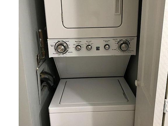 First floor condo available in La Bonne Vie close to major highways, shopping, and dining. Laminate flooring in the living room with a tile surrounded fireplace. Kitchen has tile floors, stainless steel appliances, tile backsplash, and a lot of counter space for cooking. Dining area has a sliding glass door leading outside which creates a lot of natural lighting in the home. Washer and dryer are included in the unit, located in the bathroom. Bedroom has laminate flooring and amble closet space. Extra closets in hall/living room, as well as storage space in the utility room. Schedule your showing today! 24 month minimum lease. No showings until 9/15