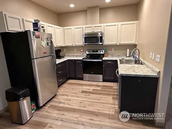 Beautifully updated 4 bed/2 bath move-in ready unit. Features include expansive living room with vaulted ceilings, large kitchen & eating area, with near new stainless steel appliances. Enjoy barbecuing and lounging on the covered deck. Updates include new luxury vinyl plank flooring, carpets and paint. Master suite features an over-sized walk-in closet. In-unit washer & dryer located in hall. HOA pays water and garbage in this well maintained complex. Financing options include FHA, VA and USDA. Must see!