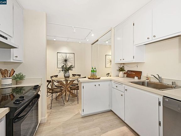 Open Sunday Sept 24 2-4 PM Charming fresh updated home in desirable Atrium Villas with lovely treetop view, updated bath, track lighting, laminate and carpeted floors as well as dual pane windows and sliding door. Two spacious closets with mirrored doors, in addition to the bedroom closet. Lovely, cool private deck. Pool with lawn area for relaxing and socializing. Terrific location near BART, downtown and freeway access for 24 and 680. Building access requires code or occupant contact to for entry. A ramp entry on side of the building and elevator make this building accessible to those with limited mobility. .