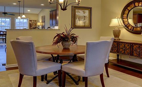 Two-car garage, first floor study, morning room with gourmet kitchen, finished rec room with full bathroom, hardwood throughout first floor, first floor owner's suite includes tray ceiling plus a luxurious en suite bathroom.
