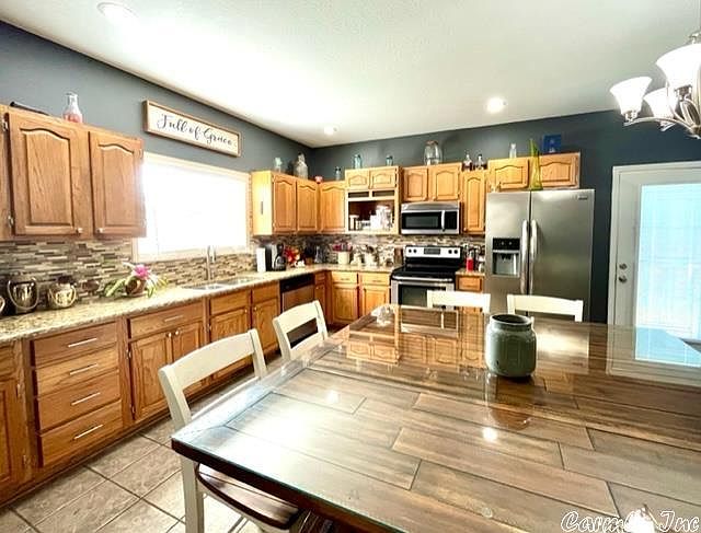 This beautiful move-in ready home is perfectly tucked away on a hidden cul-de-sac in south Paragould. The oversized eat-in kitchen features granite countertops, stainless steel appliances, undermount sink and a stylish barn-door covered pantry. The spacious master bedroom has French doors to the back deck and includes a master bath with double vanities and a walk-in shower. The large deck is perfect for lazy summer days relaxing by the swimming pool or lounging in the reading nook.