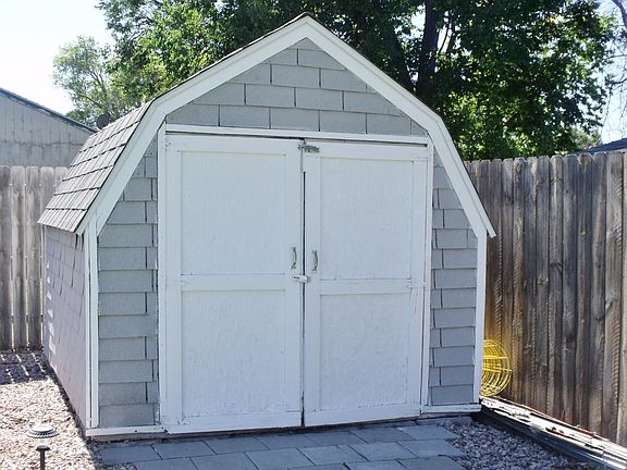 - EXTERIOR FEATURES: STORAGE SHED, PATIO, GUTTERS, COVERED PATIO, SLATE SIDING