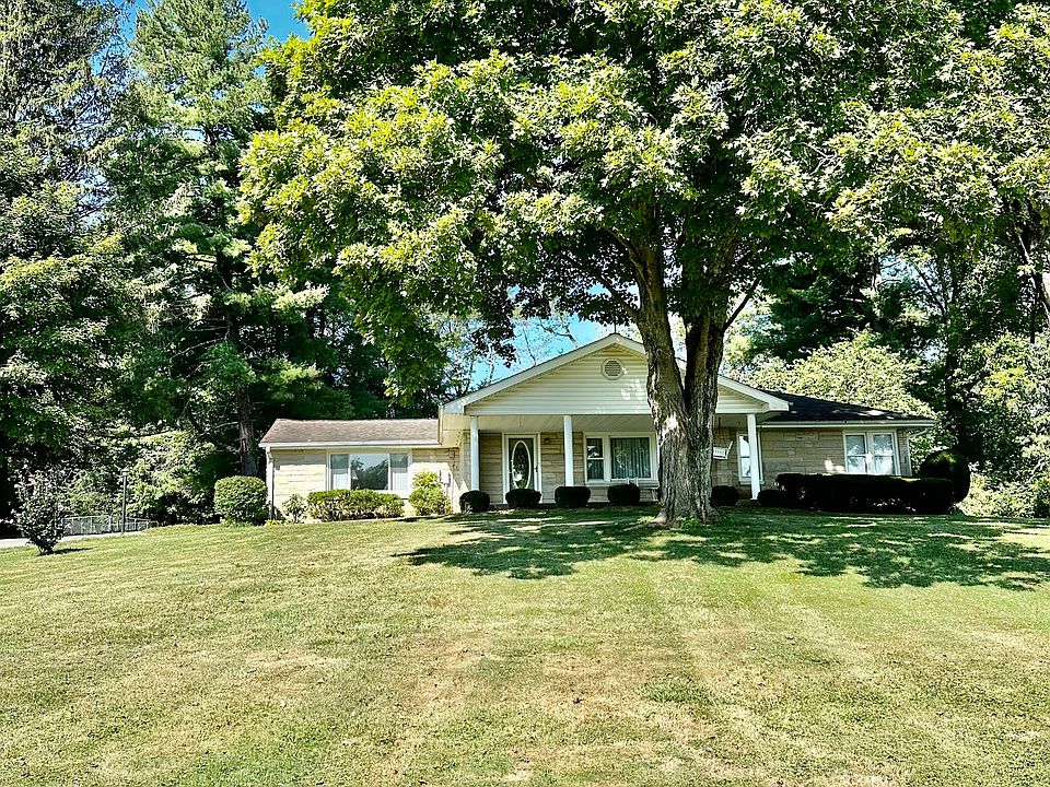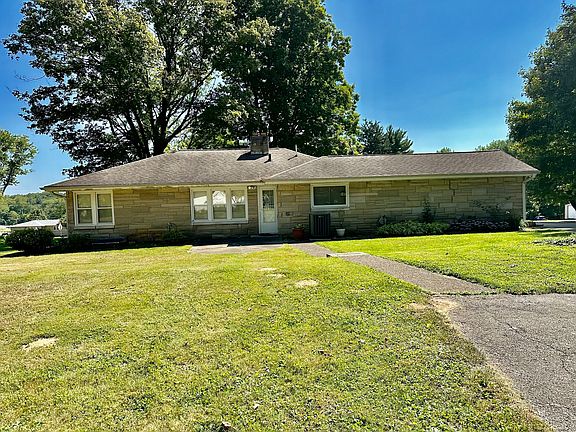 Come and enjoy the views from the front porch of this move in ready ranch bedford stone home. It is surrounded by mature trees and situated on a half acre. This 2 bedroom home features 1 1/2 bath with an attached 2 car garage. Upon entering you find a living area with a stone fireplace. The kitchen has oak cabinetry that wraps around into a dining area off of the living room. Down the hall you find two nice sized bedrooms with plenty of storage space. In the backyard, there is a concrete patio with nice views of the tree line that has great privacy, and would be good for entertaining!