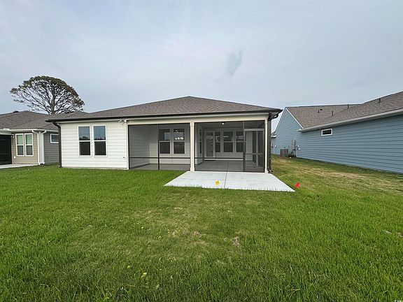 Mystique Floorplan with Tandem Golf Cart Garage - MOVE-IN READY NOW with new construction Builder Warranty. Mystique home backs to berm, less than a minute walk to club house/pools/hot tubs/fitness center. Open Floorplan with Gourmet Kitchen, White Cabinetry, Whirlpool Appliances, Gas Cooktop, Victorian Silver Quartz Countertops, Under-Cabinet Lighting and pre-wire for 3 Pendant Lights. Large Kitchen Island and Corner Pantry. Brushed Nickel Hardware and Faucets and Upgraded Trim Package. Owners Suite with Fully-Tiled Walk-in Shower/ADA Accessible and Spacious Walk-in Closet. LVP Flooring through out in "Hearthstone Grey" color, Upgraded Saluda Glacier 12 x 24 large Tile in Owners Bath, Berkley Surf Tile in Guest Bath & Laundry. No Carpet! Extended Screened Porch, Patio and Gas Line Stub-out for BBQ. Gutters, Irrigation System, Blinds, Pest-Control System and 1-year Termite Bond Included. ALL NEW 55+ Active Adult Community – Age Restricted, Central North Myrtle Beach, only 1.5 miles from the ocean. Golf Cart friendly, pets/fences allowed, on-site Amenity Center/Clubhouse, Yard Care, High-Speed Internet and Cable included in Monthly HOA. <500 Homes upon completion, build to suit, choice of 10 Customizable Floor Plans. 2-4 Bedroom homes with 2-3 car garage options. Monthly Events/Activity Calendar provided by full-time Lifestyle Director, and Amenity Center/Clubhouse scheduled to be completed late Spring 2023 and will include Indoor Lap Pool, Outdoor Salt Water Pool/Hot Tub, 8 Pickleball Courts, Fitness Center, Bocce Courts, Putting Green & 5’ Sidewalks both sides of the street throughout the community! <5 minutes to City Community Center, Sports Complex, Aquatics & Fitness Center and Crescent Beach Public Beach Access. Dog Park, Marinas, RV Parks/Storage, Golf Courses, Dining, Grocery, Medical Facilities and more within 15 minutes. Myrtle Beach International Airport <30 minutes away! You cannot beat this location!
