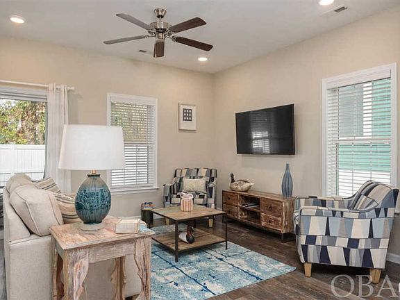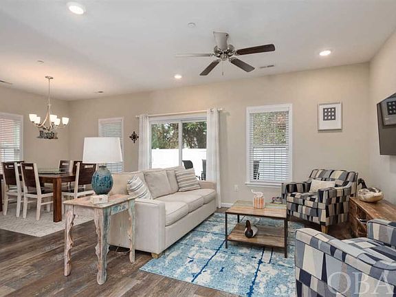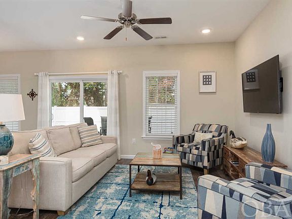 Built in 2018 this Detached Family Style Condo gives you Maintenance Free Living at its best! TURNKEY and ready for someone looking for an investment home, second home, or primary residence. The garage provides dry entry which leads into the open feel through the kitchen, dining, and family space! A few highlighted features are the beautiful granite countertops, cabinetry, pantry, luxury vinyl tile flooring, and it is fully furnished with furniture from Exotic Homes! Built by OuterBanks Renovation & Construction, LLC you can rest easy knowing that they used 2x6 construction, impact resistant windows/doors, fire suppression system, and lifetime shingles. This is also is a smart home - control the lights, HVAC, and potentially more with your phone! Only the landscaped area within the fenced backyard is maintained by owner. Community has a wonderful pool, splash pad, volleyball, fitness room, and clubhouse. Bring your kayak as it also offers a community waterfront dock. Conveniently located within an easy walk to the Wright Memorial, multi-use path, frisbee golf course, and more. Just minutes to the beach, along with some of the best local restaurants and shopping. Home has rented well since built through VRBO. Ask to see rental history and rental projection. Come see it for yourself!