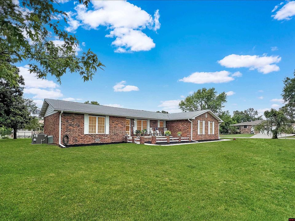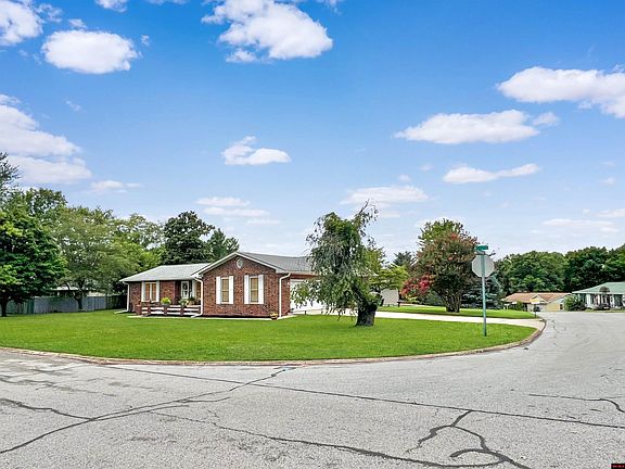 Quality Stylish home in Indian Creek. Beamed, vaulted ceilings. Gorgeous laminate rustic flooring, split floorplan, gas log fireplace, newer HVAC & vinyl windows, walk-in closets in all three bedrooms, covered porch with deck, all brick home, & close to retirement center & shopping!