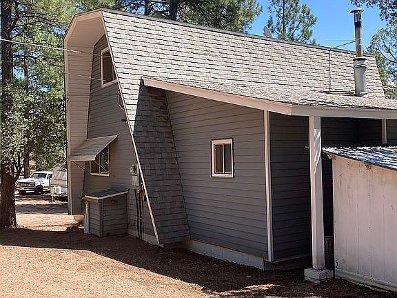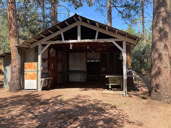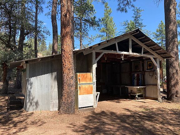 Cozy cute 2 bedroom, 1 bath A-Frame Cabin on a one of a kind property backing up to the Forest edge subdivision and a hop and a skip to Boulder loop trailhead. Wood burning stove and propane heat. On 1.54 acres horse property with a corrugated metal barn/workshop. One open stall area, 2 storage sheds, 2 metal carports . On your own well and septic. There is a seasonal spring fed creek that flows most of the year. Tucked away and private with Ponderosa Pines for a forest feel. Just minutes from anywhere in Payson this property is being SOLD AS IS and salvage removal is negotiable. Will take best offer. Willing to work with Local Realtors!
