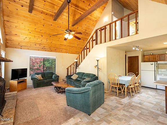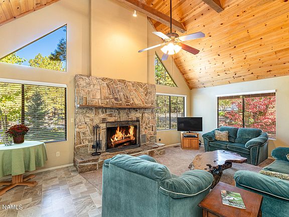 Stunning 3 bedroom, 2 bathroom fully furnished cabin in Munds Park. This cabin offers a spacious and inviting living area with a wood burning fireplace, extra large bedroom/bath upstairs, 2 bedrooms/ bath downstairs, a cozy sunroom add on, 2 large storage spaces & a spacious new trex deck to enjoy the cool summer nights. Relax out on the patio by the firepit or enjoy the lush landscaped front yard with 2 apple trees. Whether you are looking for a primary home, 2nd home or vacation rental, you will enjoy all 4 seasons in the pines at this amazing cabin! Munds Park offers plenty of fabulous amenities such as golf, tennis, swimming, hiking trails and fishing. Call today to schedule your private showing.