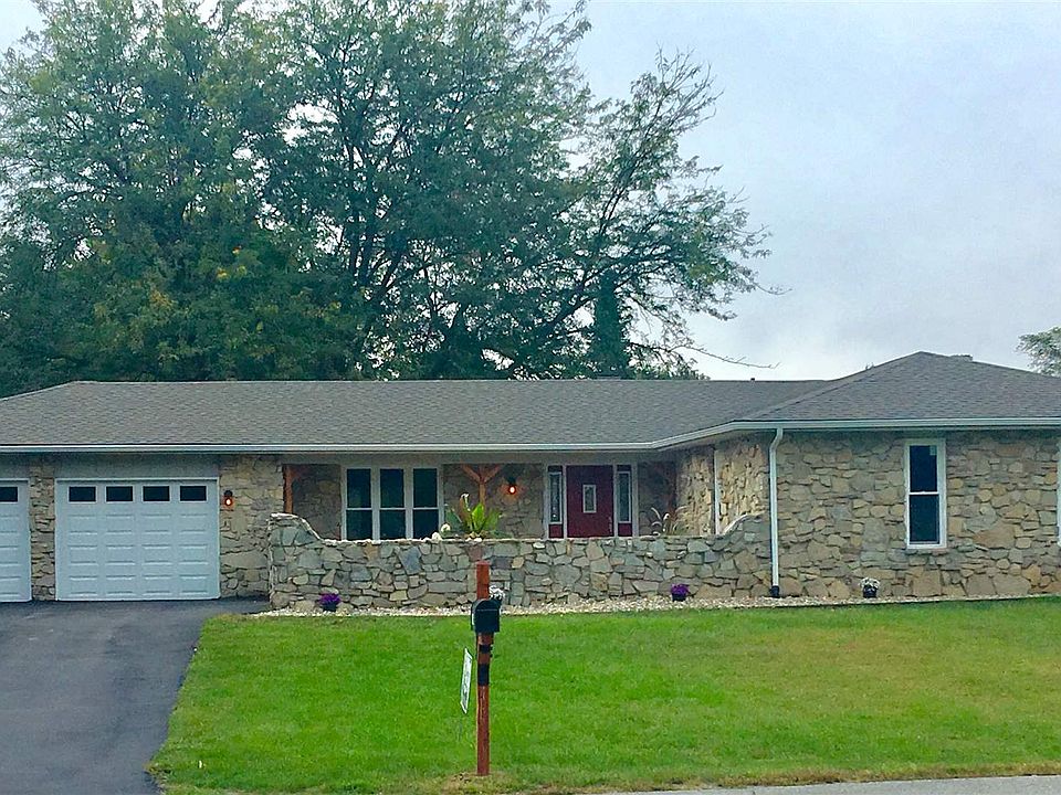 You will be dazzled by this sensational turn key stone ranch. Step inside and you are greeted by the vast open living room, Brand new kitchen is dressed to kill with stainless appliances including a wine chiller and tile backsplash. Enjoy the fabulous dining area with cozy Fireplace. 3 bdrms 2 new bathrooms including owners en suite with chic private bath. 2 patio doors with tranquil views of the large fenced yard complete with Garden. Ample storage through out, Spacious 3 season room to enjoy your private paradise. 2 car attached garage. New roof, windows, flooring, too many to list.