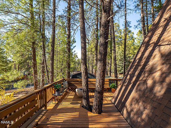 Located in the highly sought-after Animal Hill neighborhood of Munds Park, this charming A-frame home is the perfect mountain retreat and a standout vacation rental investment. Featuring 1 bedroom, 1 bathroom, and a spacious loft, the property blends cozy character with modern updates. Recent improvements include new countertops in both the kitchen and bathroom, fresh exterior paint on the home and all outbuildings, and a beautifully re-stained deck—ideal for enjoying the cool pines. The home also features air conditioning for year-round comfort and is being offered fully furnished, making it a turnkey vacation rental opportunity. With projected cap rates between 8.5-9, this property offers exceptional income potential in one of the most desirable short-term rental areas in northern AZ.