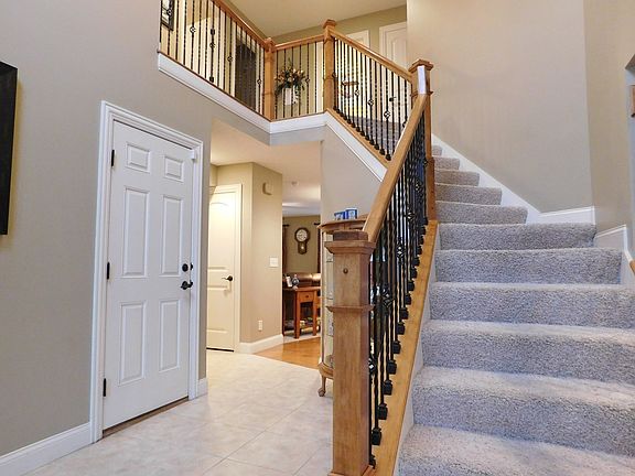 Armstrong custom build - Wonderful 5 bedroom home with 9 foot ceiling in finished basement. A large formal dining room, open kitchen and living room for today's modern living. Granite counters, breakfast bar island, tile flooring and stainless appliances. Cozy up in the living room with a warm fire anytime with easy start gas log fireplace. Four bedrooms on the upper level, master suite walk-in closet, dual sinks, whirlpool tub and separate shower and water closet. Guest bath is equipped with dual sinks as well and separate shower/tub. Get away basement with another full bath, bedroom with egress and family fun room. Newer roof, professional landscaped, large deck over looks common area. Total 5 bedrooms 3.5 baths, laundry room with sink. A great find at Fieldstone Subdivision in Savoy. Total finished square feet is approx 3221 at $97 a square foot. 3 car garage too!!