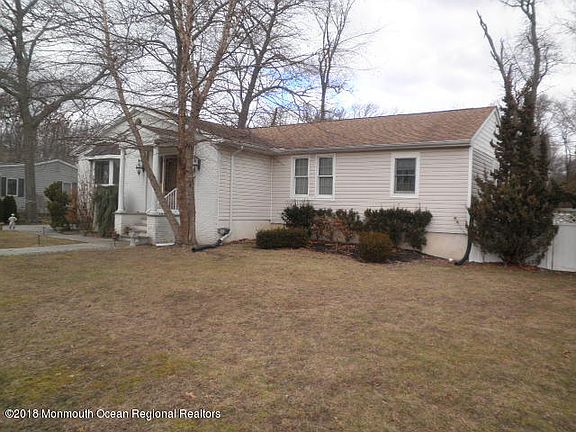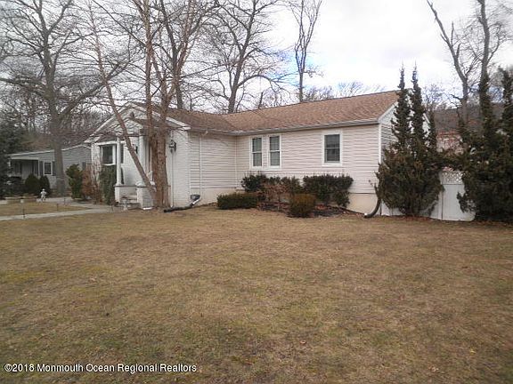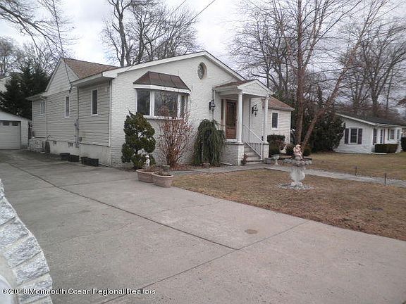 Well maintained ranch in Deal Beach Estates section of Ocean. Beautiful hardwood floors, huge living room with vaulted ceilings, enormous dinning room with inlay-ed floors, over sized newer kitchen with center island that seats 6 and has a built in ice drawer and cool bin,double electric oven, 6 burner gas stove, large master bedroom, newer bathroom with walk in shower(no tub), finished basement with walk out door, detached over sized garage(needs work, as is) and private yard.