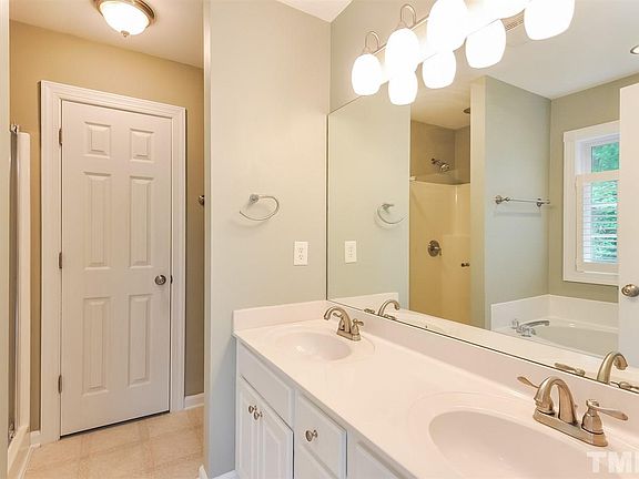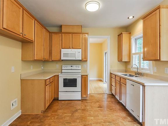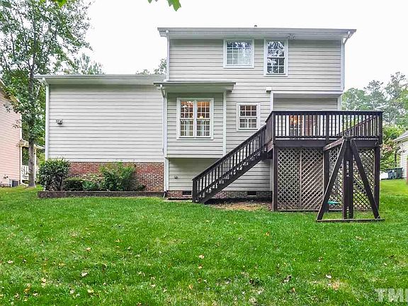 This Apex two-story home offers a den, gas fireplace, separate tub and shower, open deck, storage, and a two-car garage.