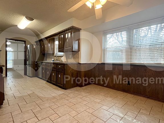 2,200 SQ FT! Spacious 3 bedroom, 2.5 bath single-story home in Buckingham North Estates! This charming home features soaring vaulted ceilings with custom wood beams and a cozy fireplace in the formal family room. The kitchen offers ample cabinet and countertop space and opens to a breakfast room for casual dining. There's a bonus flex space off the family roomperfect for a home office or playroom. Enjoy a neutral interior with tile flooring in all the right places, blinds, and ceiling fans throughout. The split-bedroom layout includes three generously sized bedrooms, with the primary suite offering a walk-in closet and full private bath. The backyard is a showstopper, complete with a wrap-around deck, covered patio, and private diving poolpool service included! A 2-car garage adds convenience, and the home is ideally located near US-190 and SH-78 for easy access around Garland.