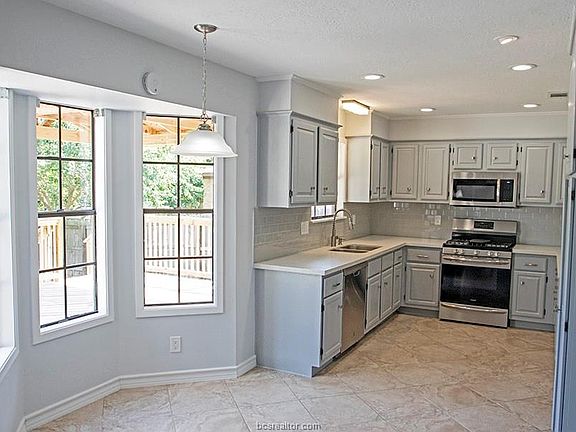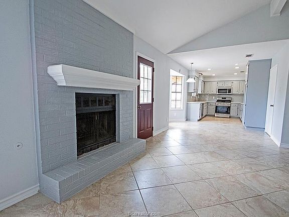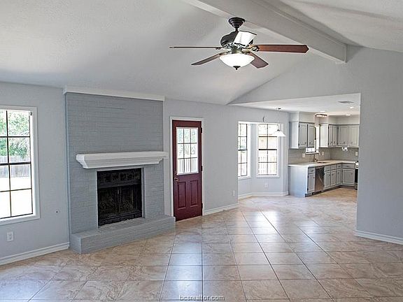 Charming 3/2 with room to roam and minutes to A&M! Beautiful, updated kitchen, quartz countertops, with all stainless appliances, spacious living area with raised beamed ceiling and wood-burning fireplace! 3 spacious bedrooms, master separate with great closet space and pretty tiled, large shower, dual sinks. All freshly painted, no carpet, all porcelain tile or laminate floors. Wonderful, large backyard with relaxing covered deck and benches for those fun evenings star-gazing. No backyard neighbors! Great location on cul-de-sac, close distance to A&M shuttle bus stop. Don't miss this charmer!