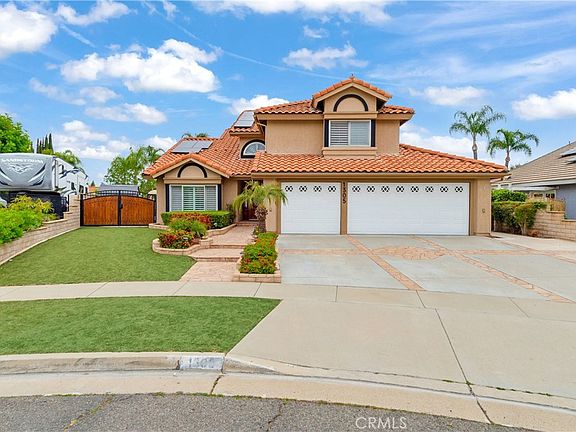 Exceptional 4-bedroom, 3-bathroom residence located in the heart of South Corona’s most sought-after neighborhood. Spanning approximately 2,558 square feet, this beautifully maintained two-story home offers the perfect blend of elegance, comfort, and convenience. Step inside to find custom tile flooring throughout and a grand sweeping staircase, complete with a built-in “Acorn” brand chairlift — ideal for those needing extra accessibility. The first floor features a full bedroom and bathroom, offering flexibility for guests or multigenerational living. Upstairs, the expansive primary suite provides a peaceful retreat with room to unwind.Gorgious Primary Bathroom. The home’s exterior is equally impressive, boasting a tile roof, an oversized 3-car attached garage, and gated Huge RV parking. Energy-saving solar panels help reduce monthly utility bills, while the low-maintenance landscaping ensures more time to enjoy the stunning backyard. Relax or entertain under the huge covered patio, ideal for Southern California’s indoor-outdoor lifestyle. Nestled on a quiet cul-de-sac, this property offers both privacy and a family-friendly atmosphere, all within close proximity to parks, top-rated schools, and shopping. Don’t miss your chance to live in one of South Corona’s finest neighborhoods — this one checks all the boxes!