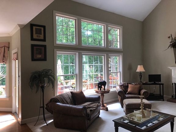 FANTASTIC 3400SF ALL BRICK 5BR/3BA w/guest suite on a breathtaking private lot in desirable Hunter Oaks! 3-car side load garage w/additional storage area. Two-story great room w/masonry fireplace, NEW white Quartz kitchen counters w/SS double oven and gas cook top. NEW sink w/touch faucet and counter top push button disposal. BIG 20'x15' Master w/double Trey ceiling and vaulted master bath easily fits a King bed with lots of other furniture. Dual staircases, extensive crown molding, chair rail, and hardwoods add to the luxurious feel of this home. Large Bedroom/Bonus over 3 car garage w/direct access to bath. ROOMY 23' x 23' Two-level Deck overlooks BEAUTIFUL PRIVATE WOODED backyard. Walking trails in backyard are just 5 minutes to clubhouse and pool area! Don't miss the Flex room/Dining Room with pocket doors off the Living Room and Kitchen and the HUGE walk-in pantry.
