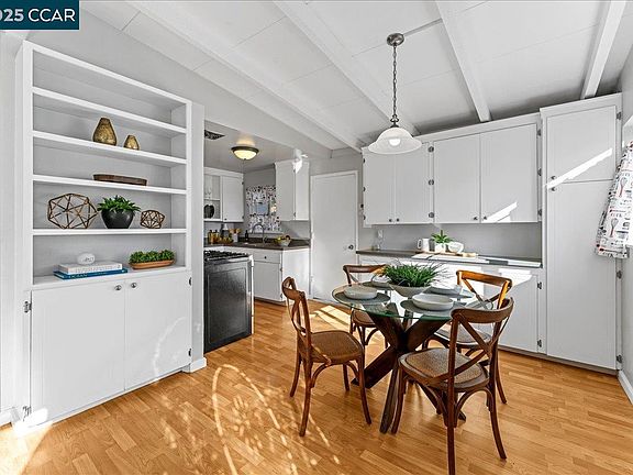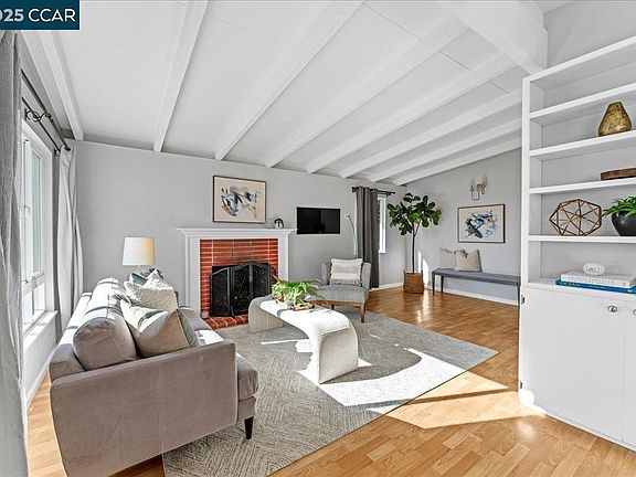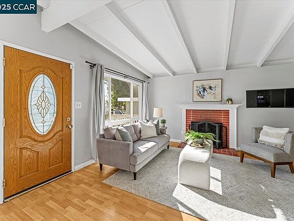 This charming single-story home offers bright natural light, bay breezes, and a perfect blend of warmth, character, and modern updates. The living room features soaring open-beam ceilings, a classic red brick fireplace, and large picture windows. The inviting layout flows into the dining area and updated kitchen with quartz countertops, crisp white cabinetry, and open shelving for a fresh, airy feel. The home includes 3 comfortable bedrooms, 2 updated bathrooms, and a large skylit bonus room ideal for a home office, gym, or playroom. The spacious primary suite offers plenty of natural light with room for a sitting area or workspace. One bath features a sleek marble vanity and tiled shower, while the other highlights a soaking tub against a dramatic full accent wall of modern tile. With no steps to entry, the home is both accessible and easy to enjoy. Centrally located with quick access to I-80, I-580, Hwy 4, the Richmond–San Rafael Bridge, and the Carquinez Bridge. Commuting is a breeze with the San Francisco Bay Ferry, Amtrak, and Richmond BART all close by. You will FALL IN LOVE!