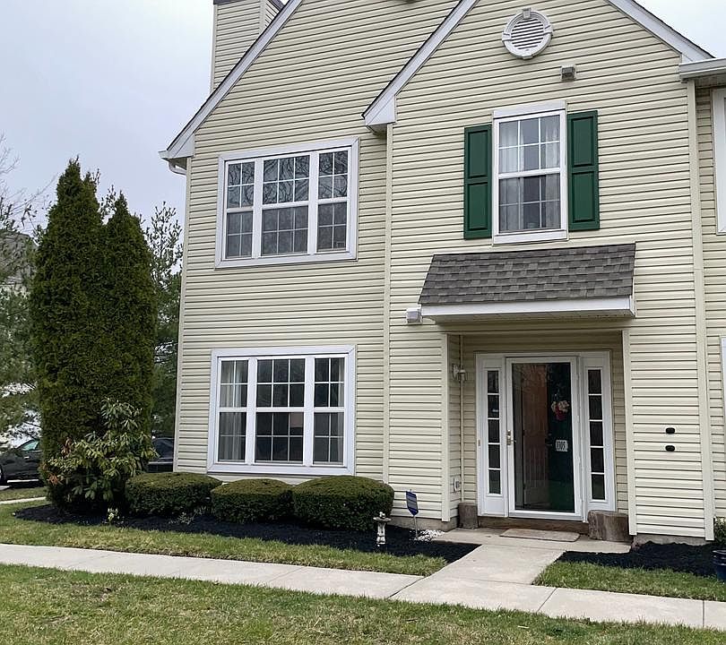 This three bedroom end unit townhome has nice updates and shows well with nice current color palate throughout. Unit opens to a newly floored entry way with sharp dark laminate wood flooring. This leads into the living room where there is a fireplace with a 3 year old gas insert that has never been used. The laminate hardwood flooring continues in the living room and dining room. The dining room offers a sliding glass door onto patio bringing plenty of natural light in. The kitchen opens to dining room and offers the same sharp updated flooring. Dining room has plenty of room for a table and custom shelving is included. The kitchen also has a custom cabinet/buffet not found typically in these townhomes and also is included. There is a small pantry in the kitchen for storage. The laundry is off the kitchen (there are wire shelves in the outside storage closet that can be reinstalled in the laundry by the new owner) A half bath completes the first floor with nice vanity and light fixture.. Upstairs are three bedrooms - with high ceilings and nice natural light. The master boasts a private, full bath and the two additional bedrooms share a full hall bath. This unit has a nice semi private patio that overlooks trees, pond on one side and parking area on the other. Community sits on the Delaware providing calm water views and walking. Close to 73 and 95 for easy access, including Philadelphia and light rail. Association installed a new roof May 2020. Owner installed a new heater and A/C in October 2019 and hot water heater July 2020.