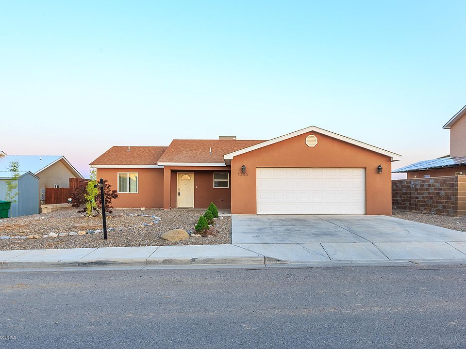 Under the vaulted ceilings enjoy the spacious living room and central kitchen with custom cabinets and glass tile backsplash. Resting will be easy in the master bedroom with walk-in closet and secluded bathroom with separate vanity, bathtub and shower! Through the laundry room with extra shelving, a gorgeous oversized garage awaits use as a multi-functional space! Built in 2012 this 3 bed, 2 bath, 1559 sqft home is ready to be your home!