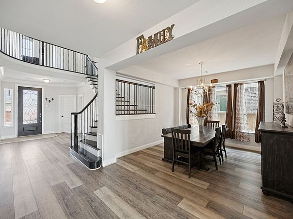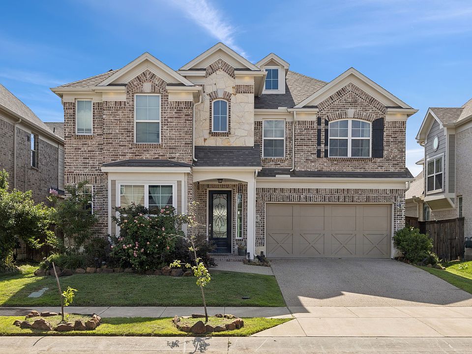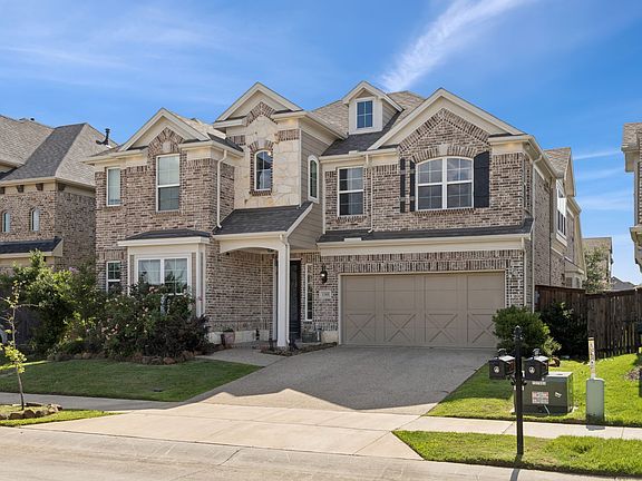 This home is loaded with upgrades & stunning features such as soaring 2 story ceilings, a curved wrought iron staircase with wood caps and white risers, granite countertops and under-mount sinks in all bathrooms, a gas fireplace, 5 burner gas cooktop, built-in oven and microwave, and a covered patio. The primary bath boasts a large, freestanding soaking tub, large separate shower & a huge walk-in closet. The primary bedroom has high ceilings & beautiful views. There's a lot of storage space as well. There's so much more to see! Connivence & luxury right at your fingertips with Costco, HEB, Kroger & easy access to DNT