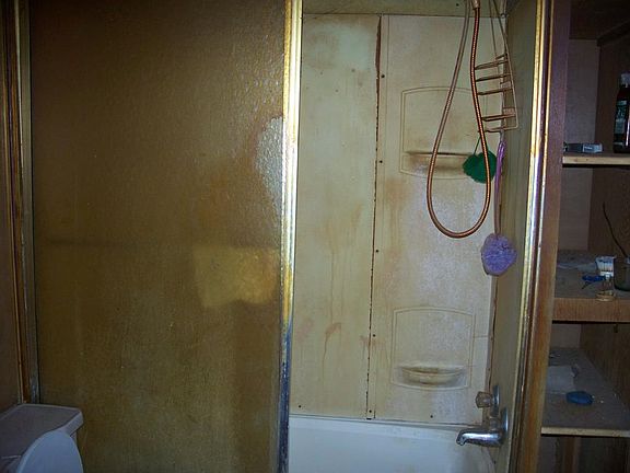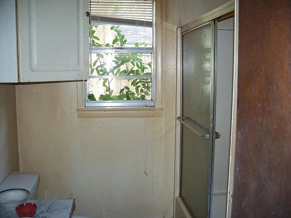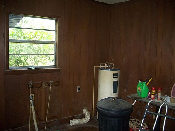 This is a fixer-upper's dream. Lots of work to be done here. Family friendly neighborhood. This is a double wide. Don't know the exact age. It does have a concrete front porch and a concrete back patio. Its foundation is made of block.