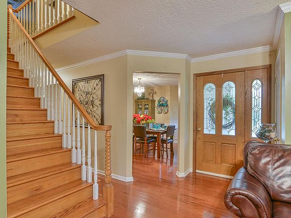Your dream home awaits by a babbling brook. As you pass by the well maintained level front yard, you are welcomed by hardwood floors into the living room with a fireplace and a dining room with large front windows. Kitchen has lots of storage and tile floors with an eat-in area. Large den/sunroom perfect for entertaining. Your guests can spill out on to the 300 sqft deck over looking the creek. The second floor boasts a large master bedroom with en-suite. Two large guest bedrooms and a guest bath finish off the second floor. The basement is it's own living space perfect for college kids or in-laws. 2 car main-level garage. Don't miss the extra storage in the drive-under garage.