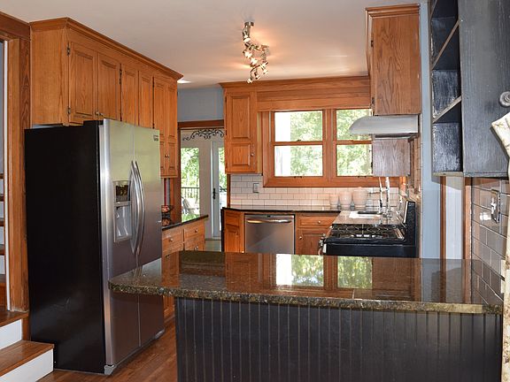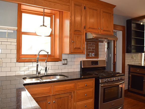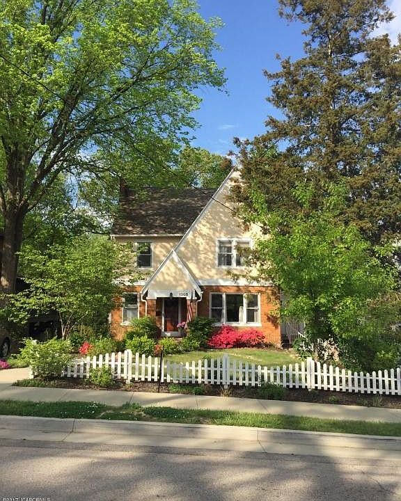 Charming English cottage in a historic neighborhood with beautiful landscaping blooming spring through fall, stamped concrete sidewalk, & white picket fence! Gleaming hardwood floors throughout & lots of light! Shutters let light in the living room while promoting privacy. Living room features built -in shelving and book cases and a wood burning fireplace with insert! Open floor plan. Updated kitchen features fabulous look w/stainless appliances including a gas stove, stylish subway tile backsplash, under mount sink w/industrial style faucet, new light fixtures, & gorgeous granite on the counter tops & the breakfast bar separating the kitchen & dining room. Stylish barn doors were added to the half bath by the main floor laundry room. Upper level features 3 very nice size bedrooms with or