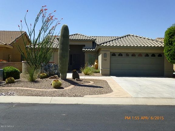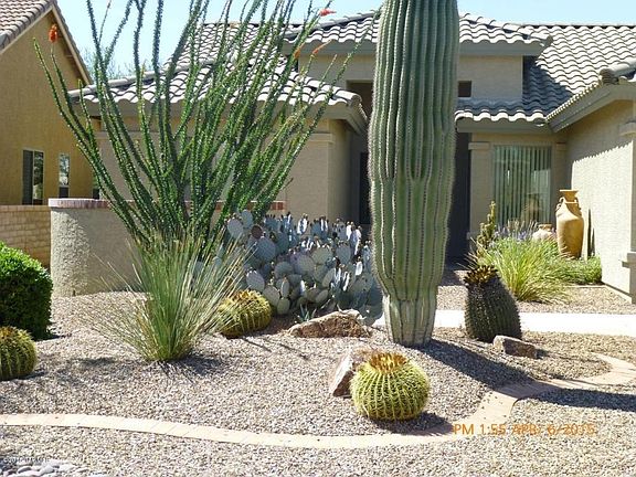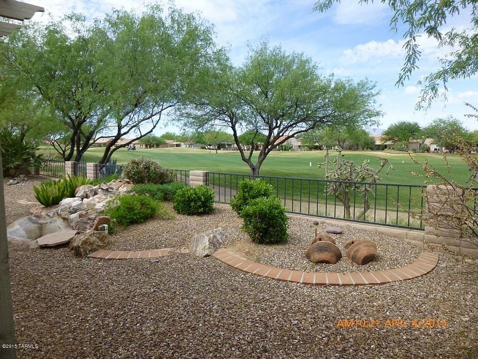 Enjoy gorgeous golf course views on the rear patio and beautiful mountain views from the front courtyard! Plus, just a short walk to all the amenities Quail Creek Resort has to offer! Wonderful curb appeal with mature desert landscaping, courtyard accent wall for early morning coffee and watching the sunrise. Walled yard with rock water feature with lush landscaping. Great Room concept, 2 Bedrooms, 2 Baths plus Den with ceiling fans, blinds, 42'' Maple Cabinetry. All appliances stay, can be ''turn key''. All furnishings available on SBOS.