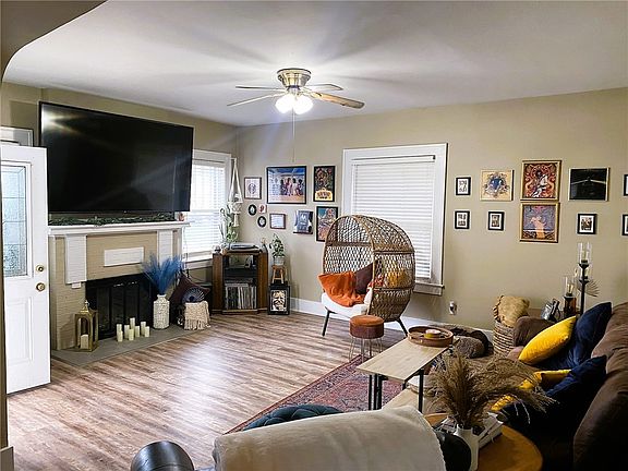 Check out all the improvements and updates in this professional contractors home. New countertops, mostly new flooring, quite a list of interior updates make the living areas spacious, open, and inviting. Nice fenced in back yard. Nice workshop / man-cave in rear of house could be converted back to a garage if desired. Kitchen, dining area, family/living area all open up with bar seating at the kitchen. Nice big wrap around front porch. Gas range, refrigerator, washer and dryer all stay. New roof 2008
