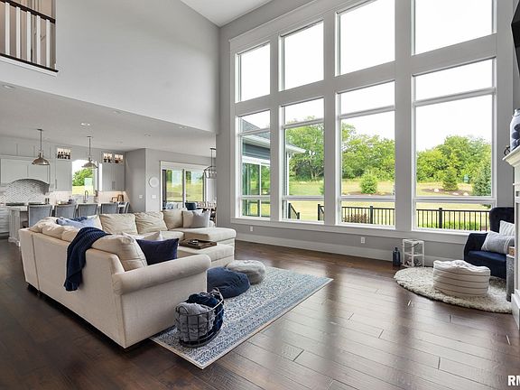 Welcome home to this stunning 2 story home that boasts nearly 4,980 finished square feet of meticulously, custom-designed features throughout the home. Tucked away off the road and nestled on a desirable 3-acre piece of land, this home offers privacy and tranquility. Step inside and experience the grand entrance foyer seamlessly connecting you to the great room with coffered ceiling, two-story windows, and the abundance of natural light. The open-concept kitchen features a grand, hard surface, quartz countertop, floor-the-ceiling cabinetry, a custom-built walk-in pantry for all of your storage needs, and a wet bar for all of your entertaining. The dining space offers floor-to-ceiling windows and sliding doors creating an inviting atmosphere to gatherings. The main floor boasts the primary bedroom with elevated tray ceilings, an en suite bathroom, and a spacious walk-in closet in addition to the main floor laundry space and private office. Retreat upstairs to one of the three spacious bedrooms designed with spacious walk-in closets and either a private bath or shared bathroom. The lower level offers a walk-out experience and is home to the 5th bedroom and walk-in closet, space for either exercise, casual living, a game room, or a theater room with custom built-ins. Like to enjoy the outside? Enjoy the peaceful, screened in cedar porch or become captivated by the finished heated/cooled 3-car garage or the maintenance-free deck while appreciating the beautiful landscape.