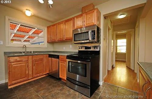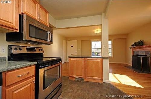 Nicely Updated in 2007 PDX Bungalow that\'s move-in ready! Open Kitchen w/stainless, Living & Dining. Lovely Wood floors. Fabulous sun porch. Basement w/ Large Family Room, half bath, kitchenette, office space & lots of storage. Uddated Electrical, Wtr Heater & Gas Furnace. Excellent Location 1 block to Halsey, 1 block to Normandale Park (dog & people) & a few blocks to MAX! Walk Score 72, Bike Score 80!