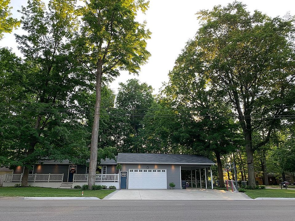 Beautiful corner lot with lots of natural shade. This home sits on a lot and a half with a spacious chain-link fenced yard. The backyard includes a garden shed with concrete floors & electricity and a 16 x 34 stamped concrete patio. The 2 car garage is newly finished with 10.5' ceilings along with an adjacent 14 x 30 carport. This home has 3 bedrooms, 2 baths, and a beautiful front porch setting. There are newer windows, doors, siding, and roof. This home is heated with a Navien on-demand water heater/boiler.