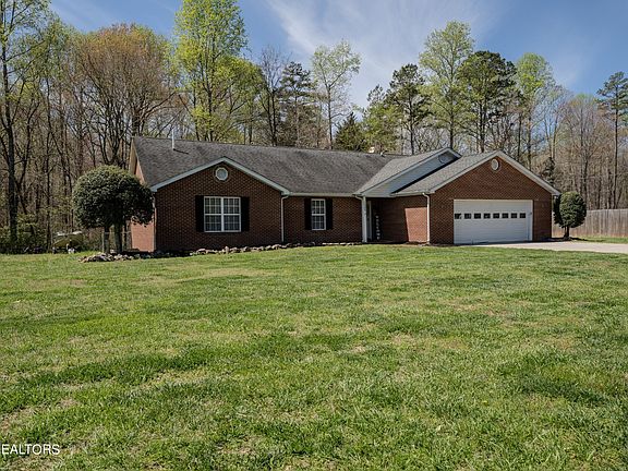 Attractive all brick rancher located on quiet dead-end road in Lenoir City. This home has 3 bedrooms and 2 baths, eat-in kitchen, large open family room/dining room and spacious sunroom. Custom bookcase built in the family room with a desk on each side that has been wired for sound system, cable, and electric. Storage galore with two pantries in the kitchen, large closets in the bedrooms, and a large closet in the Dining Room. Washer and Dryer hookups are currently in the large 2 car garage, but can be reversed into the kitchen. Home backs up to woods and has its own shed for storing your lawn mower and tools. Located near the Ruritan Park with walking paths. Convenient to both I-75 exit 81 and I-40 exits 364 and 369. Additionally, this location is minutes from Lenoir City shopping and an easy drive to Oak Ridge and West Knoxville. Recent home improvements include NEW GUTTERS WITH GUTTER GUARDS and NEW FLOORING!