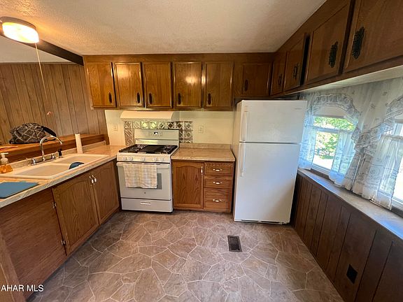 Mobile home with addition featuring nice eat in kitchen with range and refrigerator, living room, 2 bedrooms, office and 1.75 baths. Newer FA oil furnace and central air. Large screened in rear porch. Three sheds and over 0.7 acre lot.