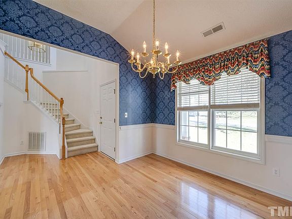 Desirable 1st floor master floorplan in coveted, established, Apex n'hood of Dogwood Ridge. Hardwoods in separate dining room & foyer. Sun soaked 2 story foyer & family room that features gas fireplace. Main level master w/ vaulted ceilings, WIC, & en-suite w/ dual vanity. Lovely yard w/ mature landscaping. Large deck for entertaining. The $$$ updates have been made-roof-2017, AC-2014. Price is reflective of needed cosmetic updating-check comps priced $20K higher! Awesome n'hood amenities! Top Schools!