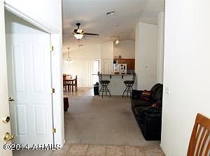 Bright, Open, Vaulted Ceiling Great Room Floor Plan with 3 Bedrooms plus a Den and Large Swimming Pool. Kitchen opens up to Great Room with Breakfast Bar, Oak Cabinets, Refrigerator, Dishwasher, Microwave, 2 Large Deep Sinks and Tile Floors. Large Eat-In Kitchen Dining Area with Bay Window. Large Master Bedroom and Bath with Double Sinks, Shower/Tub Combo and Large Walk-In Closet. Den/Guest Room/4th Bedroom Split from other bedrooms. Energy Efficient Single Story Home with Gas Hot Water Heater and Furnace, Dual Pane Windows and Ceiling Fans through out. Beautiful wood blinds and upgraded 4 Panel Doors. Security System, Workbench in the Garage, Large Shade Tree in front yard and cool off in the spacious Swimming Pool in the backyard next to Covered Patio. No neighbors behind!